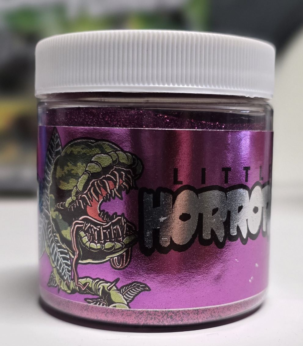 Little Horrors is a fierce magenta automotive flake that delivers wicked shine, smooth finish, and bold depth. It’ll keep your paint job dancing—and daring—with every shift of light. Available in 4oz. jars.